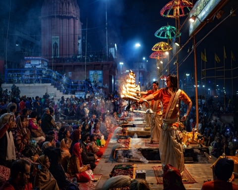 Your Varanasi sightseeing tour begins with an early morning boat ride on the River Ganges. Enjoy soaking in the spectacular sunrise views and later, return to the hotel for breakfast. After breakfast, proceed to Sarnath. It is the place dotted with various Buddhist pilgrimage sites of great significance. If you’re a devout follower of Buddha, then you must visit this place. Later, visit the New Vishwanath Temple also known as the “Birla Mandir”. Settled within the Banaras Hindu University, it is a Hindu temple dedicated to Lord Shiva (God of Destruction). It took around 35 years to build this temple. Head to the Tulsi Manas Temple built by the royal family of Banaras in 1964. It is believed to be the place where the legendary poet Tulsidas wrote the great Indian epic “Ramcharitramanas”. Close to this temple is the Durga Temple (Monkey temple) dedicated to Goddess Durga (divine feminine energy). In the evening, witness the spectacular Ganga Aarti at the Dashashwamedh Ghat. It is a daily evening ceremony that has been practised for thousands of years on the banks of River Ganges.
